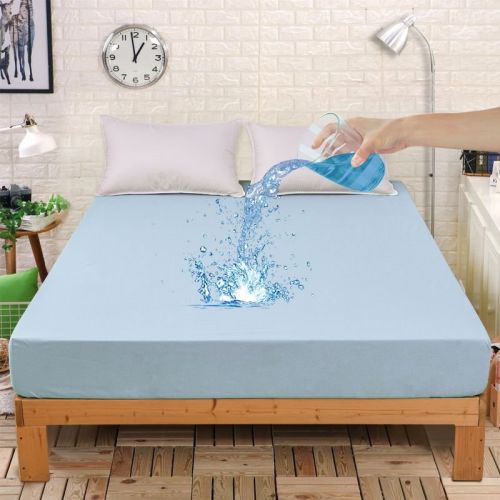 Home > Blue Waterproof Fitted Sheet | Solid Color Brushed Bedding