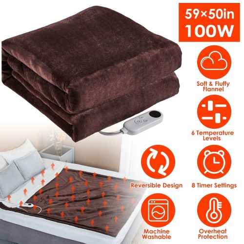 *Extremely Comfortable*:This electric heated blanket features ultra-soft flannel on both sides; which feels comfortable and has better heat retention. 59x50in large size can fully cover your body and envelop you in a velvety embrace. Adopting coffee color on the front side and white color on the back side; which allows you to flip it based on your mood and your home décor.