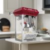 Durable Structure, Effortless Cleaning: This countertop popcorn machine comprises a cold rolled steel frame and tempered glass panels to withstand frequent use. The doors with magnetic latch provides quick access and enhances the appearance of the popcorn inside. The printed graphics on its top may also catch some hungry stares. Besides, the wing nuts on the kettle allow you to detach its lid easily and clean its interior thoroughly. Hassle-free cleaning will extend the machine's service life.