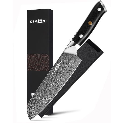 Home > Kegani Santoku Knife 7 Inch Japanese Santoku Knife, 73 Layers AUS-10 Damascus Japanese Knife, FullTang G10 Handle Damascus Santoku Knife With Case & S